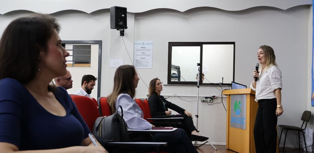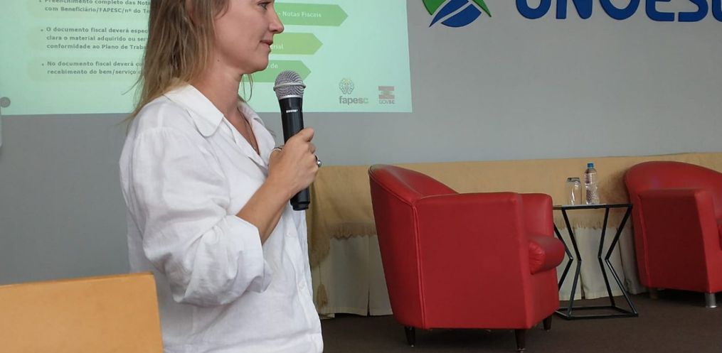 A participação da Fapesc ocorreu a partir de um convite da direção Unoesc. Temas como o trabalho da fundação, a importância da pesquisa para o desenvolvimento catarinense, oportunidades de fomento via edital de chamada pública, perspectivas da captação de recursos para 2025 e prestação de contas foram abordados pela diretora de Ciência, Tecnologia e Inovação (CTI) da Fapesc, Valeska Tratsk, pela gerente de Ciência e Pesquisa, Larissa Waskow e pela gerente de Prestação de Contas, Emanuelle Marques Nunes.
