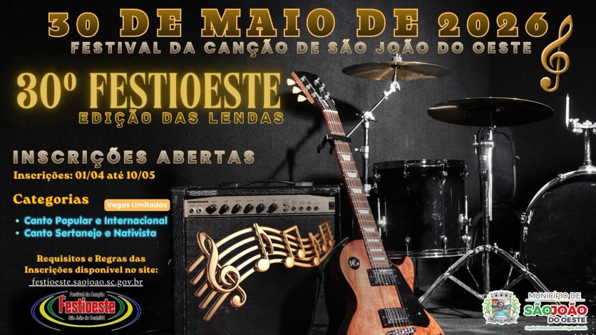 A 30ª edição do FestiOeste, o Festival da Canção de São João do Oeste será especial. Um evento comemorativo e com calouros previamente selecionados com base no currículo que possuem em festivais. Conforme o integrante da comissão central organizadora, André Klunk, o período de inscrições iniciou no dia primeiro de abril e prossegue até 10 de maio. Ele destaca que será um marco muito importante na história do festival e com várias alterações neste ano.