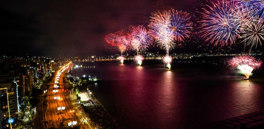 Segundo a prefeitura, cerca de 150 mil pessoas participam do evento. A festa da virada segue com shows na Beira-Mar Norte até as 2h.