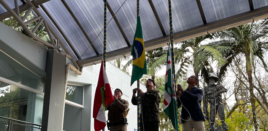 O acendimento da pira da Semana da Pátria no 14º Regimento de Cavalaria Mecanizado (RCMec) marcou o início das atividades cívicas em São Miguel do Oeste. De lá, o Fogo Simbólico foi conduzido até a Praça Central, onde ficará durante toda a semana, sendo guardado em revezamento por militares, escolas, entidades e servidores da Prefeitura.