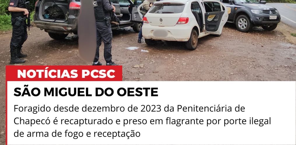 Um homem de 36 anos, foragido da Penitenciária de Chapecó desde dezembro de 2023, foi recapturado nesta sexta-feira, 11, em São Miguel do Oeste, em uma operação da Delegacia de Investigação Criminal (DIC). Condenado a mais de 24 anos de prisão por crimes como roubo, furto e tentativa de homicídio, ele foi preso em flagrante com uma arma de fogo roubada.