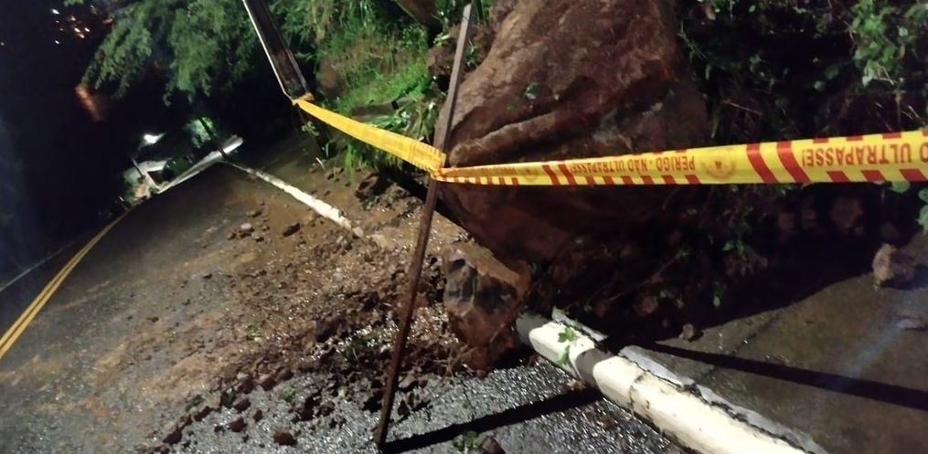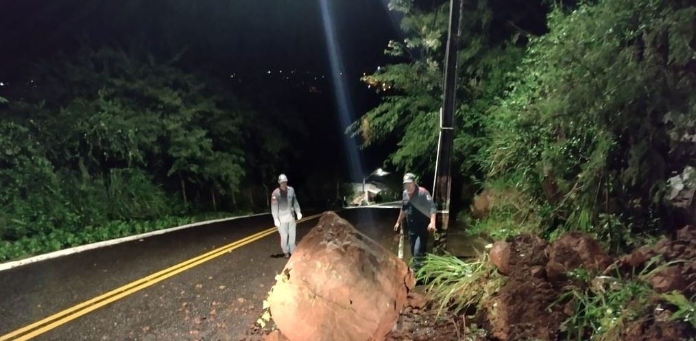 O Corpo de Bombeiros verificou por volta da 1 hora desta quarta-feira, 04, uma área de risco potencial, com deslizamento de terra e pedras, uma delas de grande porte na Rua 15 de Novembro, no bairro Santa Tereza Alto, em Itapiranga.