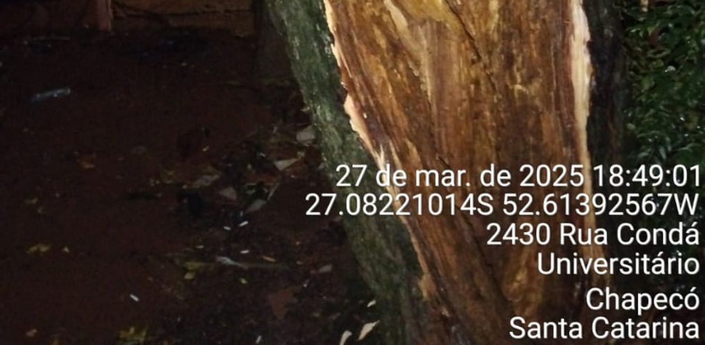 Em Chapecó, a Defesa Civil registrou três atendimentos, sendo dois alagamentos e uma queda de árvore em residência. Os alagamentos não causaram danos, pois a água retrocedeu rapidamente. Já a queda da árvore deixou uma família desalojada no bairro Passo dos Fortes.