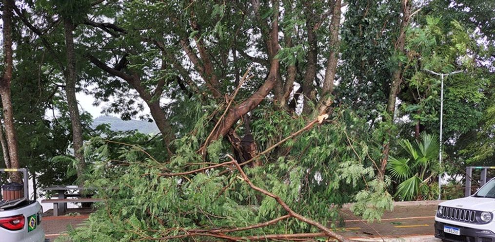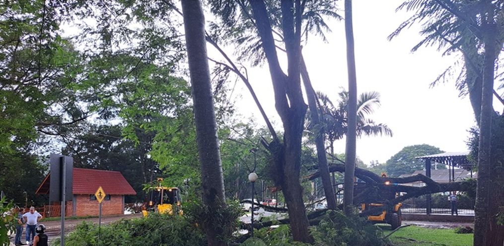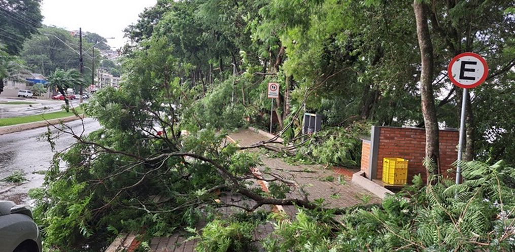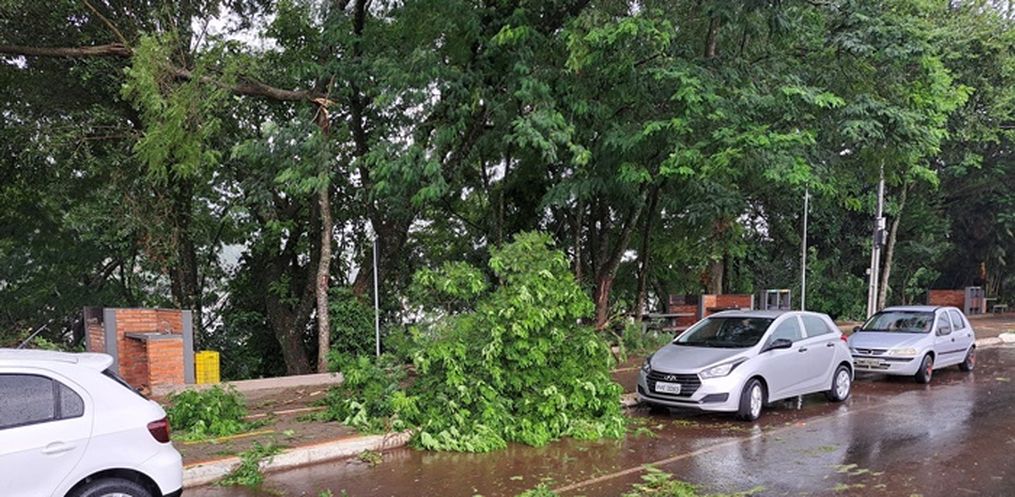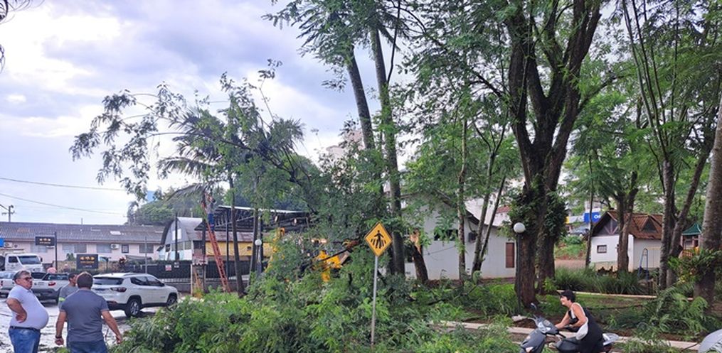 Na Avenida Uruguai, proximidades da Praça dos Pioneiros, carros que estavam estacionados foram atingidos por queda de árvores. Os bombeiros foram acionados para o corte das árvores. A guarnição ainda realizou a entrega de lona para morador da Rua Santa Tereza D’Ávila, no Bairro Santa Tereza Baixo, que teve a residência parcialmente destelhada.