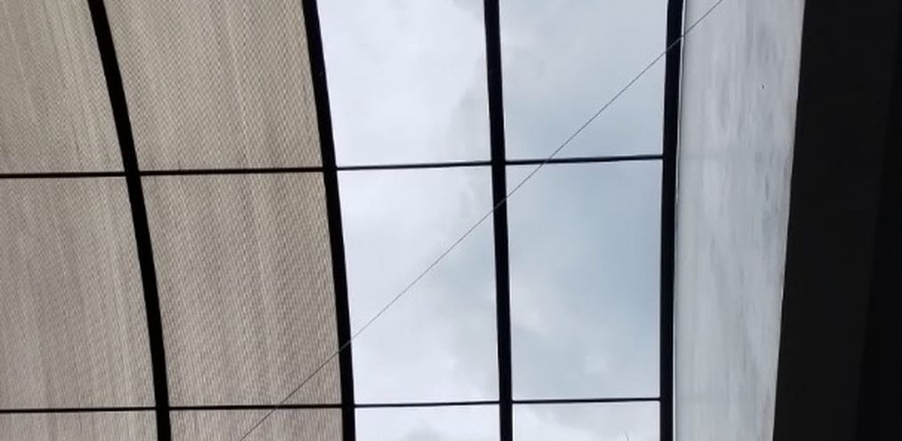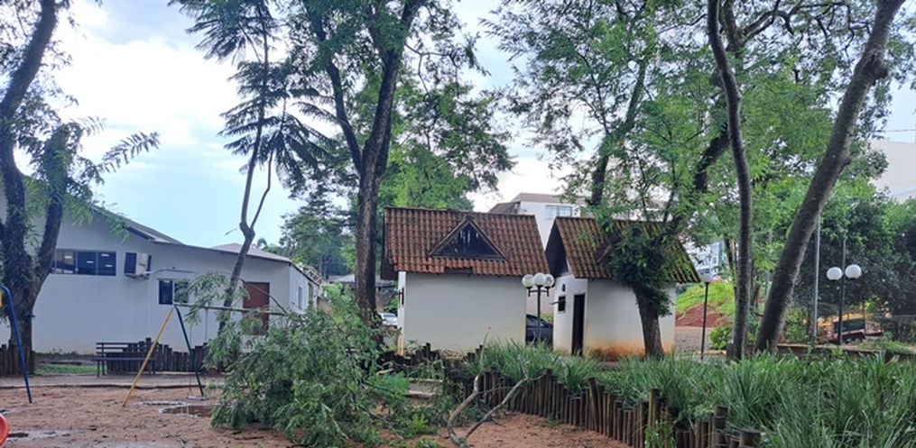 Na Escola São Vicente, no centro da cidade, as rajadas de ventos arrancaram folhas de acrílico na área do refeitório.