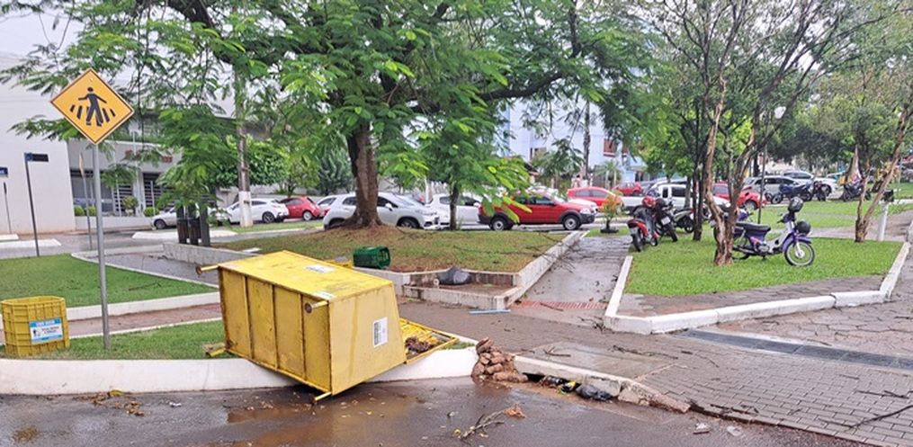 Na Rua do Comércio, pelo menos quatro motocicletas que estavam estacionadas caíram em virtude dos fortes ventos.