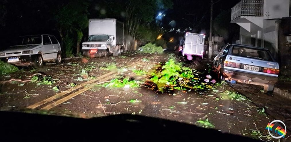 A chuva acompanhada de ventos fortes na noite desta segunda-feira, 16, e madrugada de terça, 17, atingiu vários municípios do Extremo Oeste de Santa Catarina.