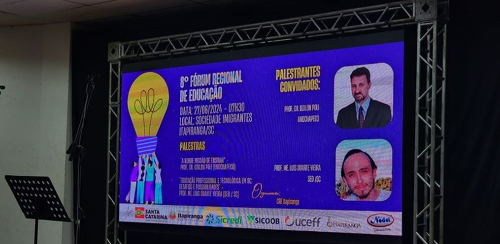 A oitava edição do evento foi realizada na manhã desta quinta-feira, na Sociedade Imigrantes. O Fórum reuniu os professores das escolas estaduais e os gestores das municipais da Coordenadoria Regional de Educação. Os municípios que fazem parte são Itapiranga, São João do Oeste, Tunápolis, Santa Helena e Iporã do Oeste. Também participaram do encontro representantes das Coordenadorias de Dionísio Cerqueira e São Miguel do Oeste. Além deles, diversas lideranças do Extremo Oeste. Os Prefeitos de Itapiranga, Alexandre Ribas e São João do Oeste, Genésio Anton, também participaram do Fórum Regional
