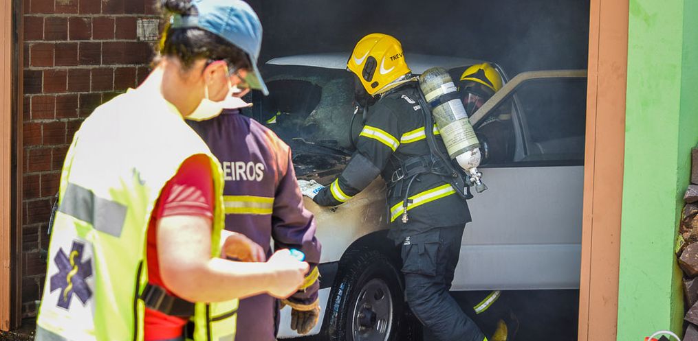 De acordo com o Corpo de Bombeiros, as guarnições foram acionadas para atender o incêndio na padaria, porém chegando no local foi localizado que o foco do incêndio era em um veículo que estava na garagem do prédio.