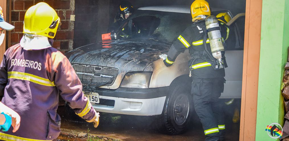 Moradores de um prédio e quem trabalhava em uma padaria localizada no cruzamento das Ruas Albino Moser com XV de Novembro, no São Jorge, em São Miguel do Oeste, viveram momentos de tensão no começo da tarde deste sábado, 28. Eles notaram o barulho e a fumaça provocados por uma camionete que pegou fogo na garagem do edifício. O veículo ficou com a parte do motor completamente queimado.