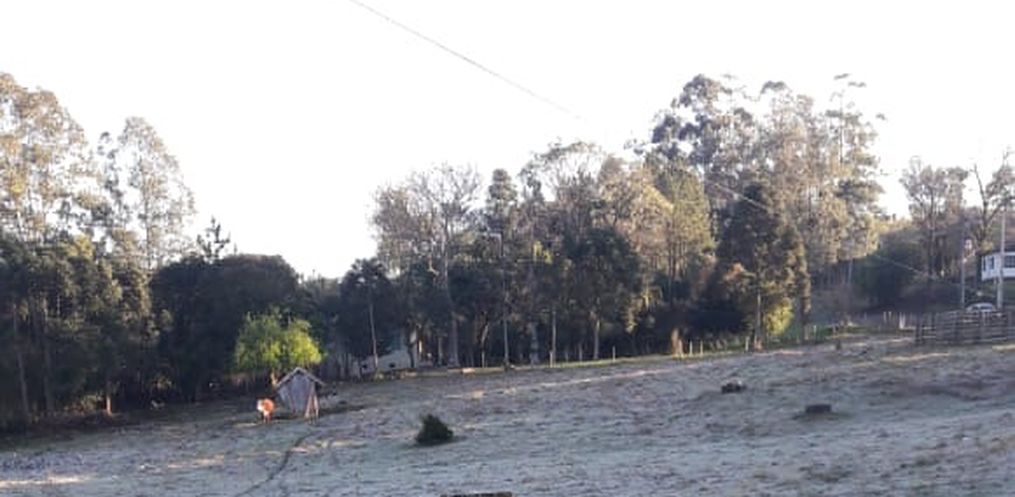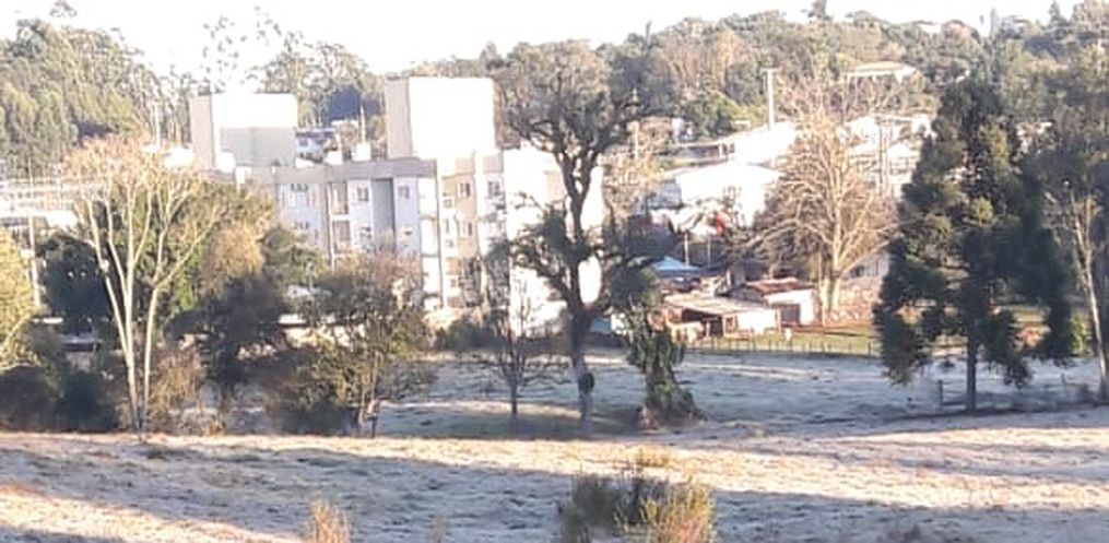 Internautas encaminharam ao jornalismo da Rede Peperi algumas imagens que mostram a geada no bairro São Gotardo e também na Grameira Imperio, na Canela Gaúcha.