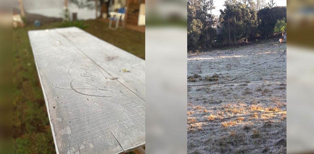 A geada tomou conta de algumas paisagens nesta quarta-feira, 15, em São Miguel do Oeste.