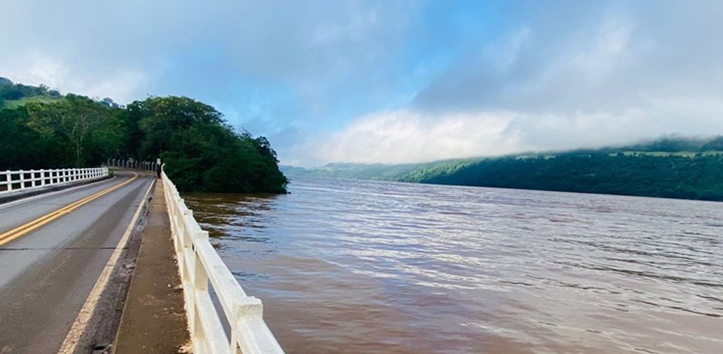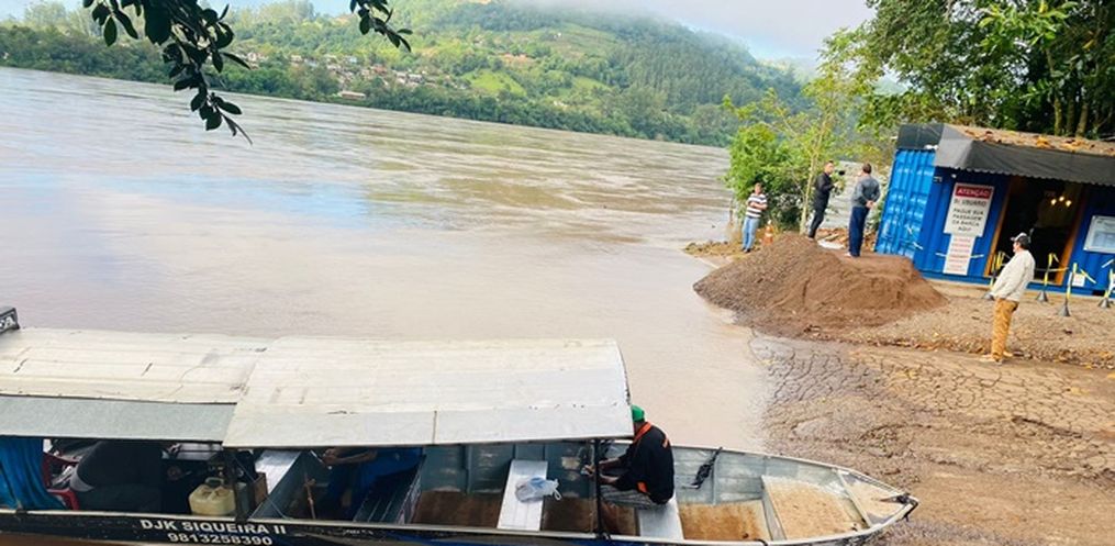 3. Cheia do Rio Uruguai suspende travessia da balsa em Mondaí