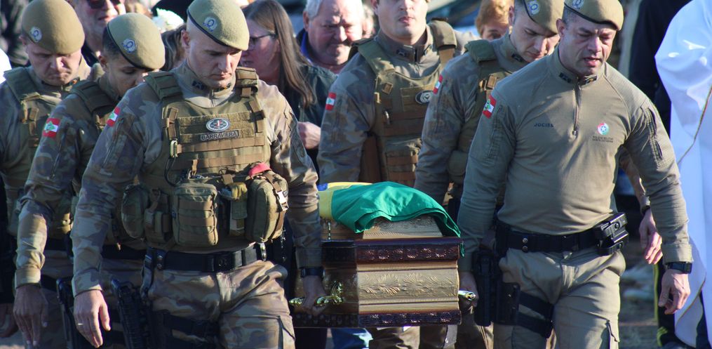 Fernando era lotado no 18º Batalhão da PM, em Brusque, e recebeu honrarias militares no sepultamento. Uma salva de tiros foi realizada por colegas de farda, e a bandeira do Estado de Santa Catarina foi dobrada e entregue solenemente à mãe do cabo, em um dos momentos mais emocionantes da cerimônia.