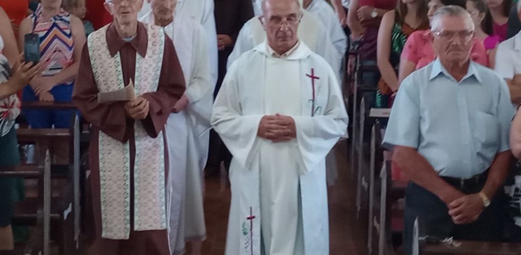 O Frei Lino Hoscheidt celebrou seus votos perpétuos durante missa em Linha Ervalzinho - São João do Oeste neste domingo, 01. A celebração faz parte da programação da Festa do Reencontro que já é tradicional na comunidade.