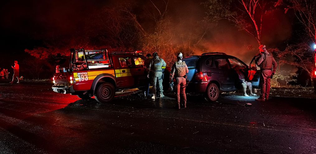 Uma das mulheres que estava no veículo fugiu para uma área de mata próxima, mas foi localizada e presa pela Polícia Militar. A outra mulher morreu carbonizada dentro do automóvel. Um dos homens foi preso em flagrante no local.