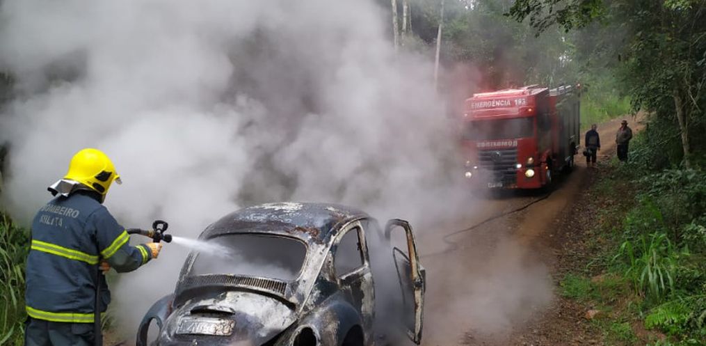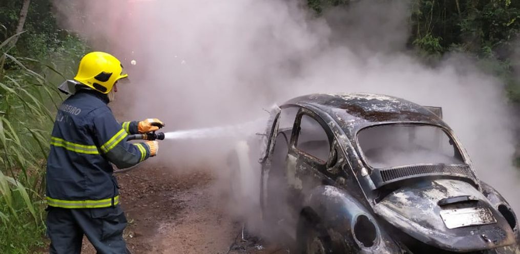 No local, o veículo VW Fusca 1300 branco encontrava-se em chamas e os ocupantes fora do veículo, ilesos. Foi realizada avaliação, combate às chamas e posterior rescaldo, ficando o veículo aos cuidados da polícia militar de Itapiranga.
