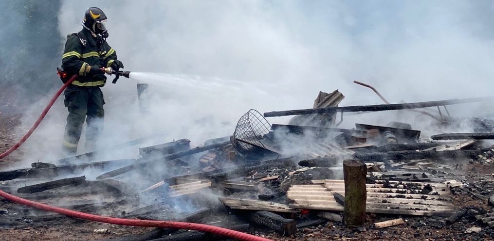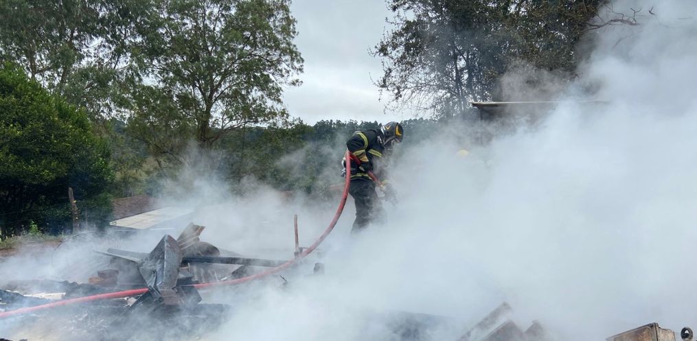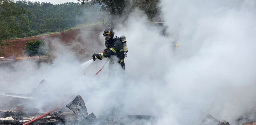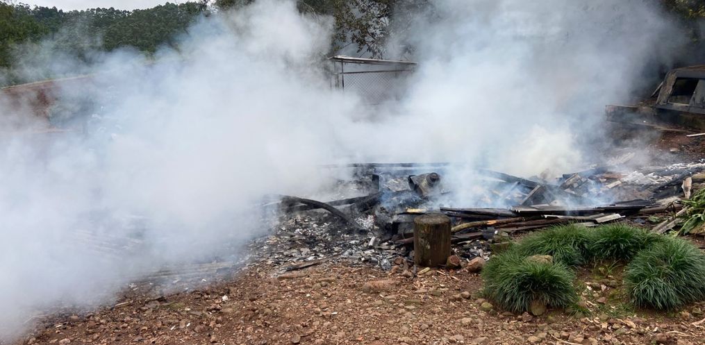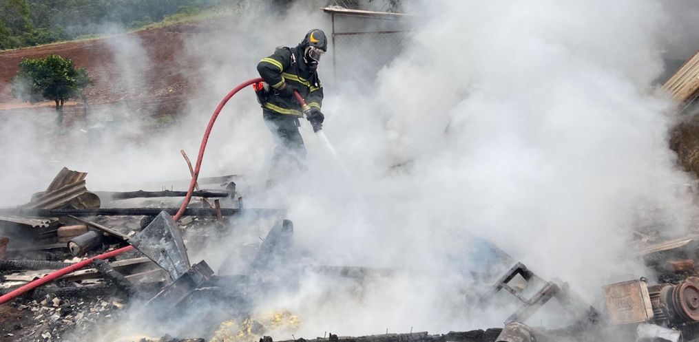 Um galpão, de aproximadamente 35 metros quadrados, foi destruído por um incêndio por volta das 11h30 dessa terça-feira, 25, no Distrito de Itajubá, em Descanso.