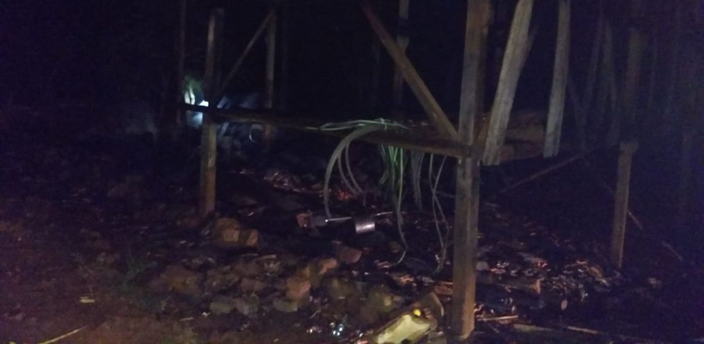 O galpão ficou destruído. Não houve feridos.