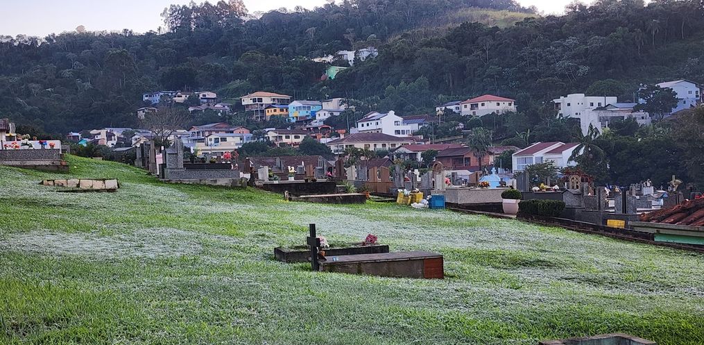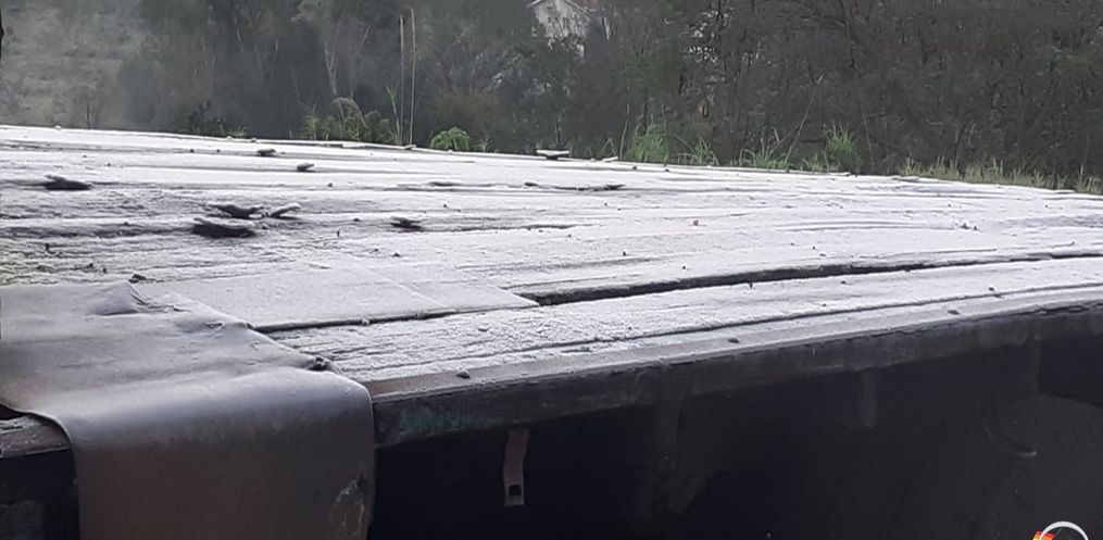Com a chegada de uma frente fria, ocorreu formação de geada em diversos pontos dos municípios. Carros, pastagens e locais mais altos, ficaram cobertos de gelo.