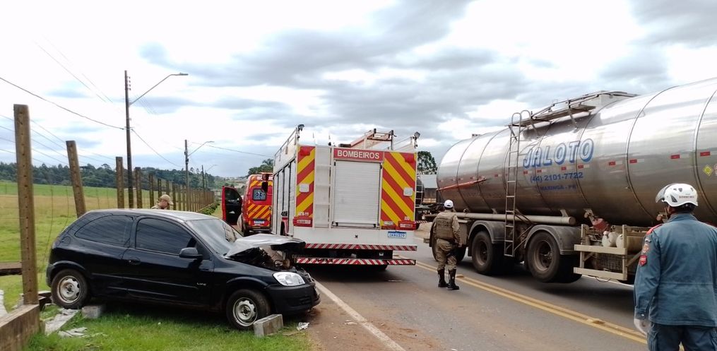 O Corpo de Bombeiros de São Lourenço do Oeste foi acionado para atender a ocorrência e ao chegar no local foram encontrados dois ocupantes dentro de um Celta em situação de encarceramento mecânico.