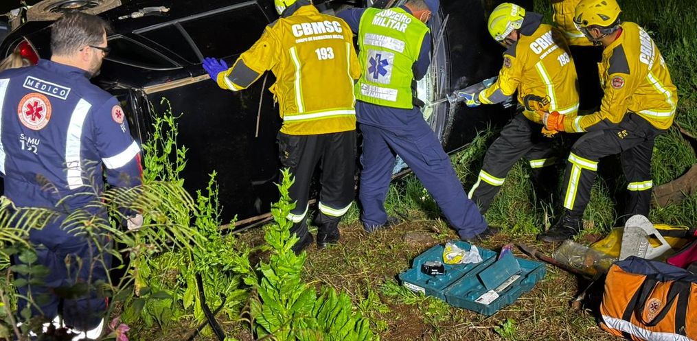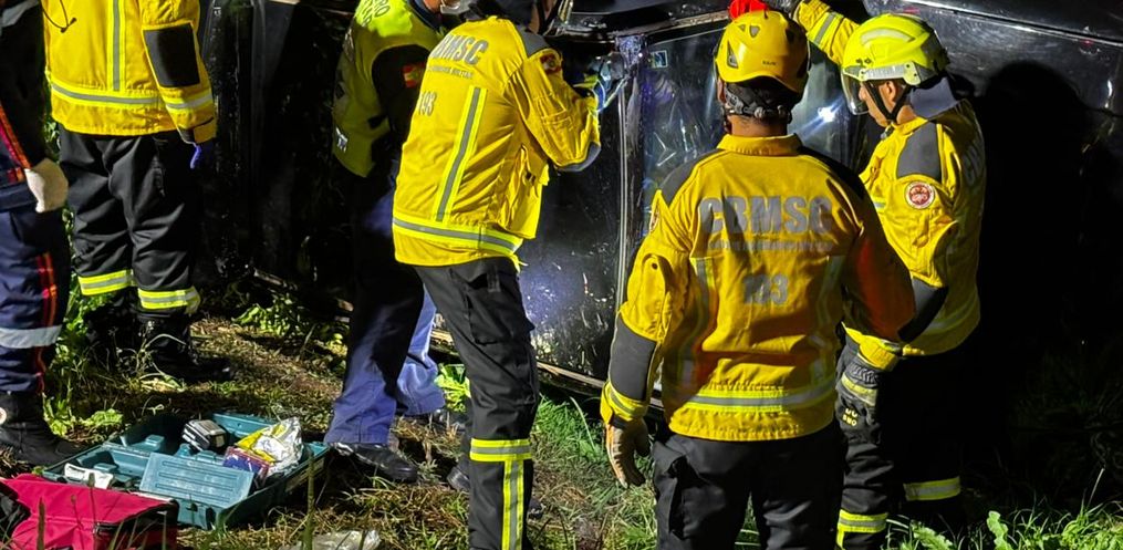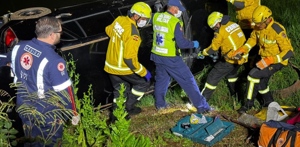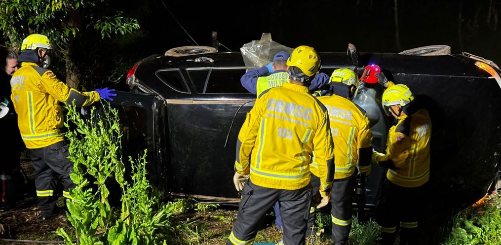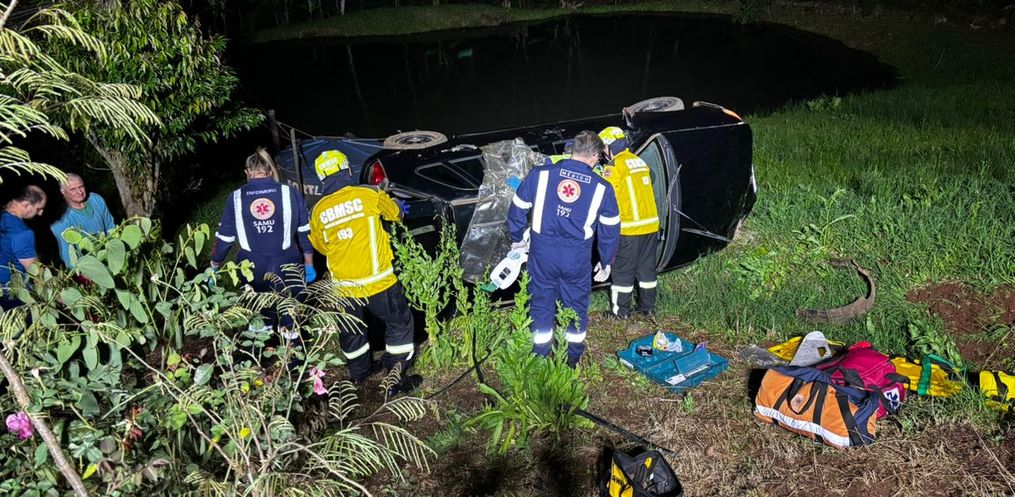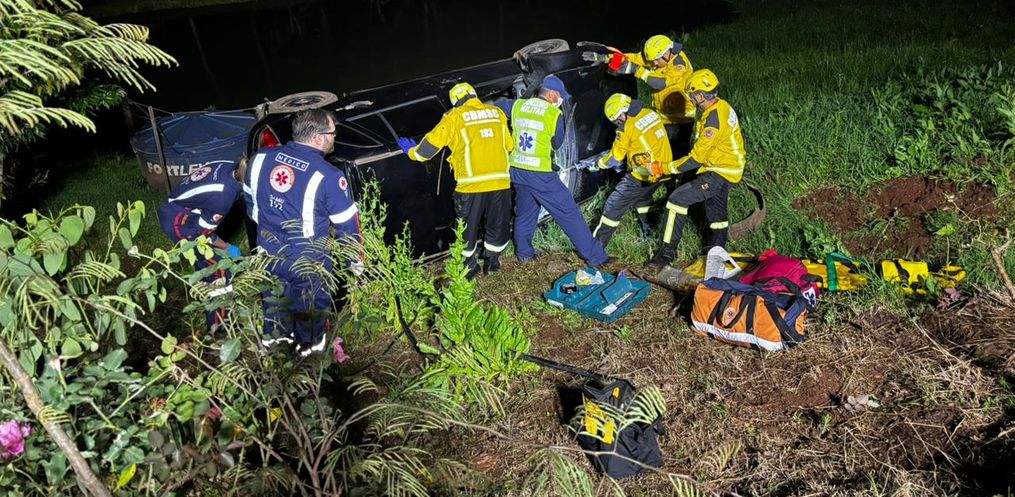 Equipes do Corpo de Bombeiros e do SAMU Avançado foram acionadas e prestaram atendimento às três vítimas que estavam no automóvel, entre elas uma gestante. De acordo com as primeiras informações, duas pessoas conseguiram sair do veículo por conta própria, enquanto a mulher grávida precisou ser retirada pelos bombeiros.