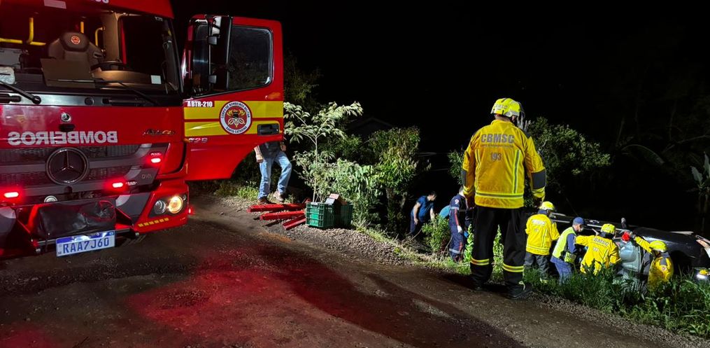 Um acidente de trânsito foi registrado na noite deste sábado, 18, na Linha Santa Catarina, interior de São Miguel do Oeste. Um veículo VW Gol saiu da estrada e tombou em uma ribanceira.
