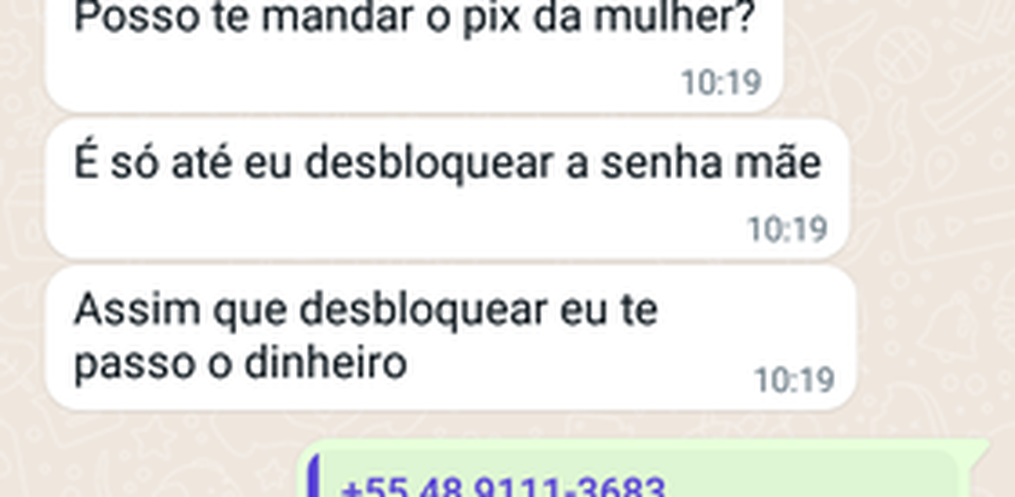 A mulher que é professora em São Miguel do Oeste contou que recebeu uma mensagem via aplicativo enquanto estava no intervalo entre as aulas. Ela disse que a “falsa filha” entrou em contato pedindo para que ela transferisse R$ 1.254 pois seu aplicativo havia bloqueado e ela precisava pagar uma conta.