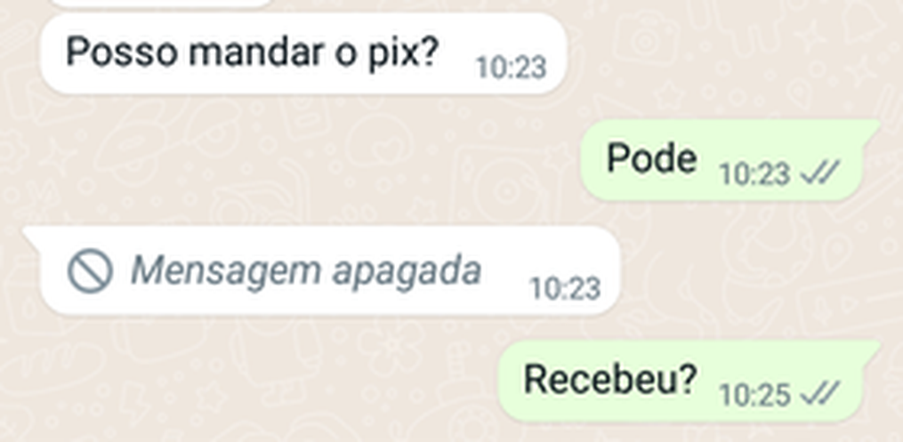A mulher disse que de imediato percebeu a farsa, porém, fingiu estar acreditando e continuou a conversa, momento em que confirmou que havia feito o PIX no valor solicitado. A “falsa filha” pediu um comprovante e neste momento ocorreu a trollagem, pois a mulher fez um comprovante com folha de papel comum e a caneta.