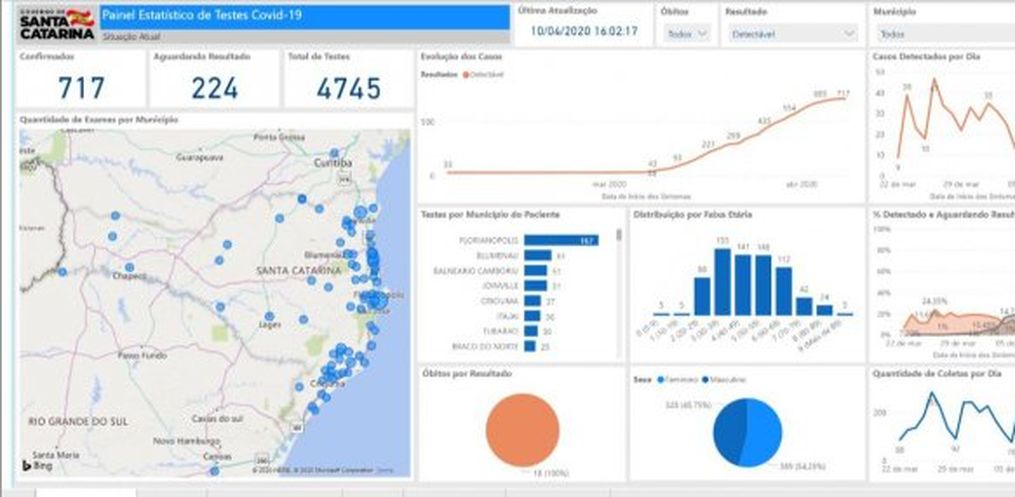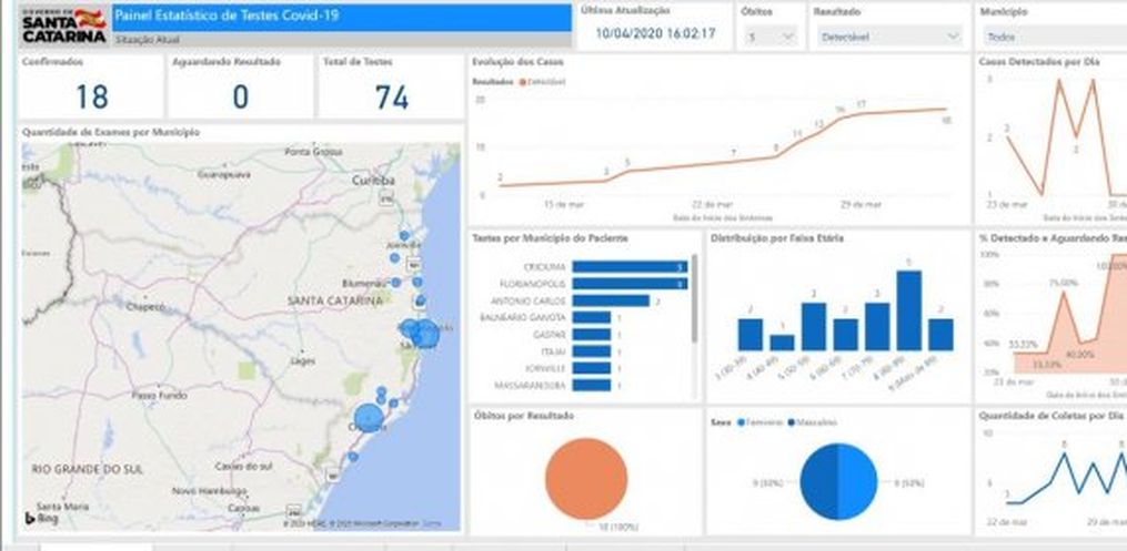 A partir do uso de uma ferramenta de Business Inteligence (BI), que foi mostrada pelo governador Carlos Moisés na coletiva desta sexta-feira, o Governo do Estado passará a divulgar boletins mais detalhados sobre o avanço da Covid-19 em Santa Catarina, com a evolução dos casos por cidade, entre outras informações.