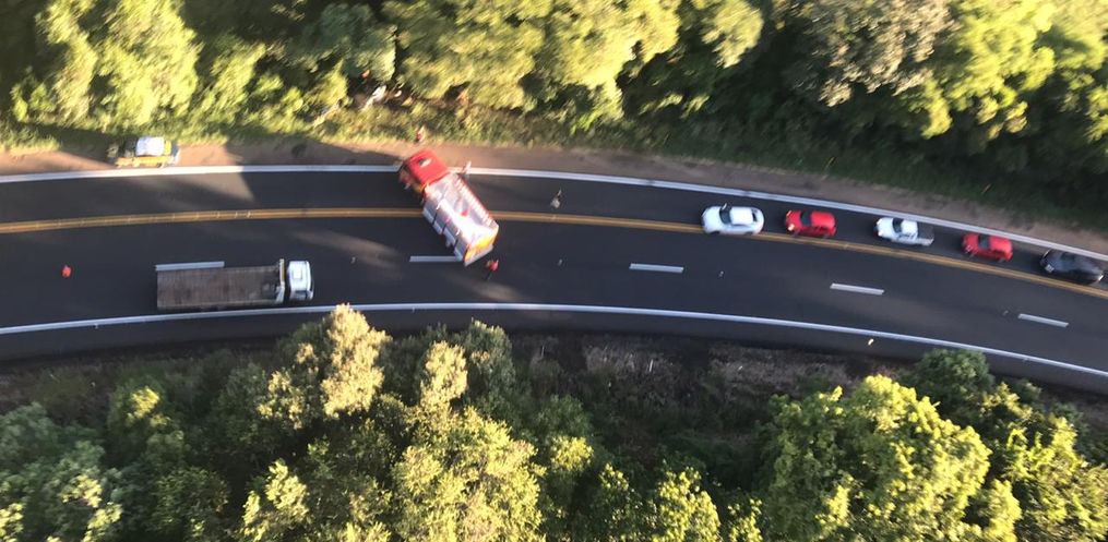 Lentidão e longas filas de congestionamento são registradas nas imediações do acidente.