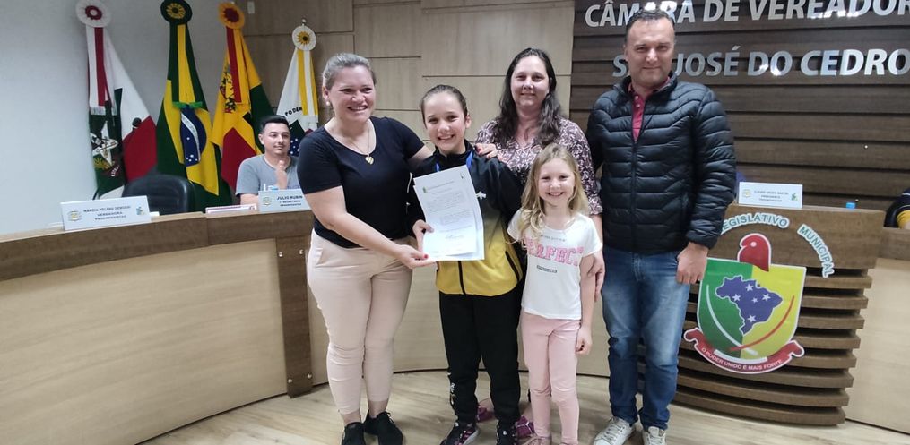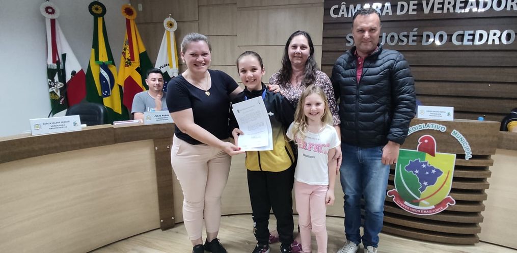 A primeira sessão ordinária da Câmara de Vereadores de São José do Cedro no mês de setembro, realizada na noite desta segunda-feira, 04, contou com os trabalhos de indicações e requerimento de vereadores. Ainda tivemos a entrega de moção para os integrantes do grupo de patinação.