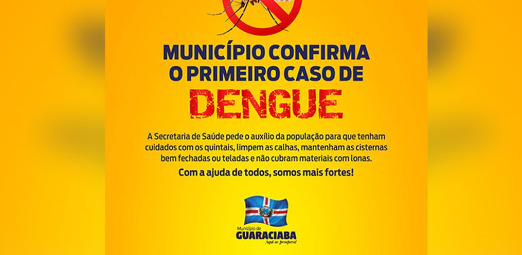 A Secretaria de Saúde de Guaraciaba recebeu a confirmação, nesta quinta-feira, 14, do primeiro caso positivo para a doença Dengue no município, transmitida pelo mosquito Aedes Aegypti. A informação é da Secretária de Saúde Daiane Dorigon. Ela explica que o teste foi coletado no último dia 11 e encaminhado ao LACEN - Laboratório Central de Saúde Pública.