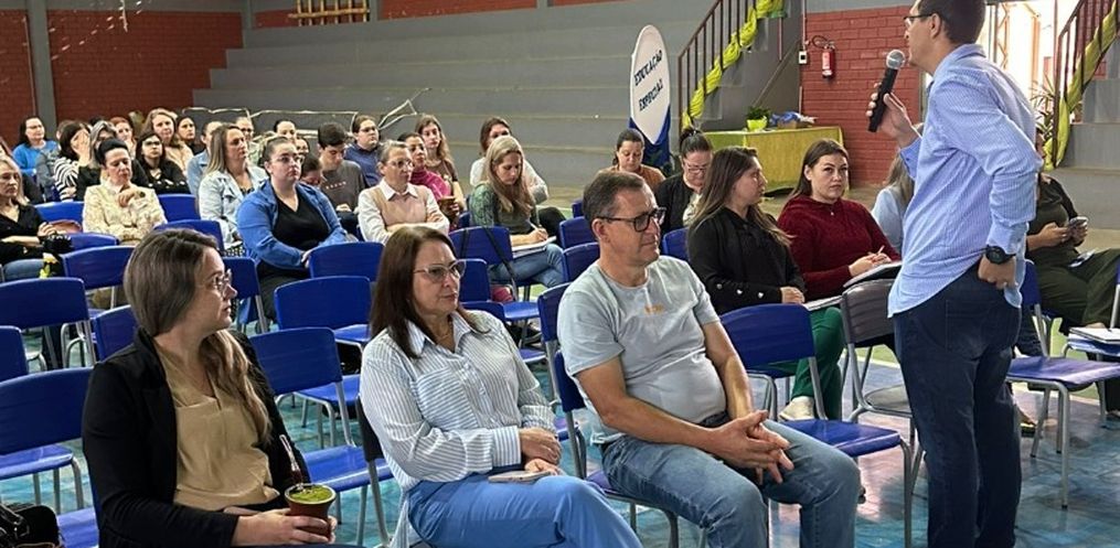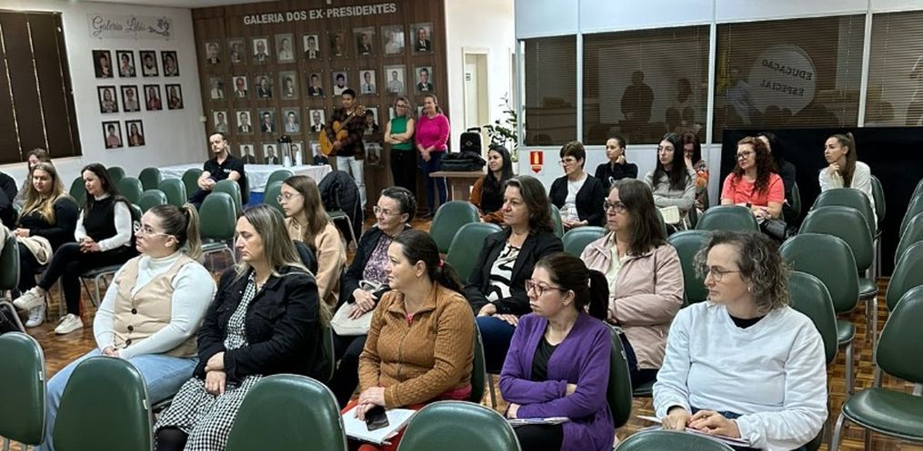 As palestras foram ministradas pelas formadoras Rosilei Gugel Ficagna e Tatiane Machry Eckert, que trouxeram contribuições teóricas e práticas sobre o atendimento educacional especializado e as estratégias de inclusão no ambiente escolar.