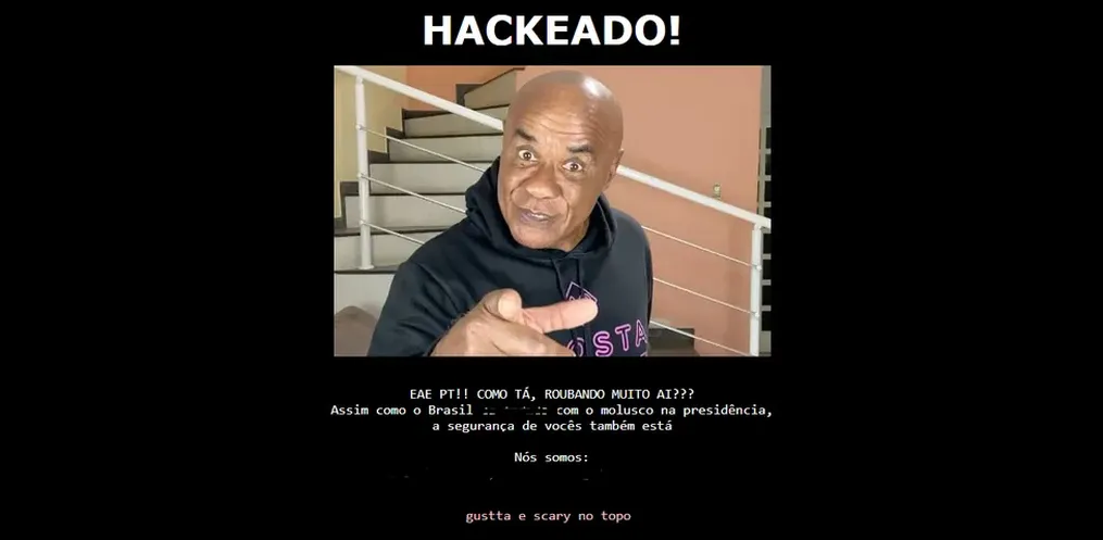 A página, que é usada para divulgar informações do partido e o trabalho de integrantes do governo Lula, passou a exibir uma tela preta acompanhada de uma imagem do ex-ator pornô Kid Bengala.