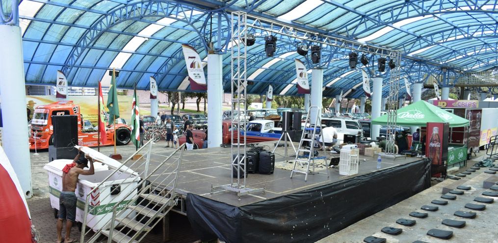 Muitas pessoas já estão visitando a praça pela manhã de sábado. A área coberta se encontra lotada de carros e as expectativas para o evento são boas. O palco para as bandas já está quase concluído. Mais carros ainda estão por chegar conforme o evento iniciar. Confira abaixo as imagens do momento.