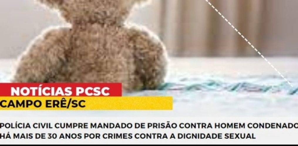 Na tarde desta segunda-feira, 27, a Polícia Civil de Santa Catarina, através da Delegacia de Polícia de Fronteira de Campo Erê/SC, deu cumprimento a um mandado de prisão contra um homem de 71 anos de idade, condenado definitivamente a 31 anos, 4 meses e 21 dias de reclusão, pelos crimes de estupro de vulnerável (duas vezes), importunação sexual (duas vezes) e satisfação de lascívia mediante presença de criança ou adolescente (uma vez).