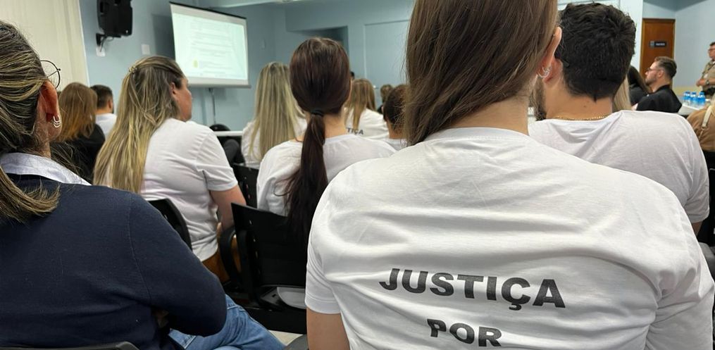 Durante a sessão, familiares e amigos de Gabriel acompanharam o júri vestidos com camisetas que pediam justiça.