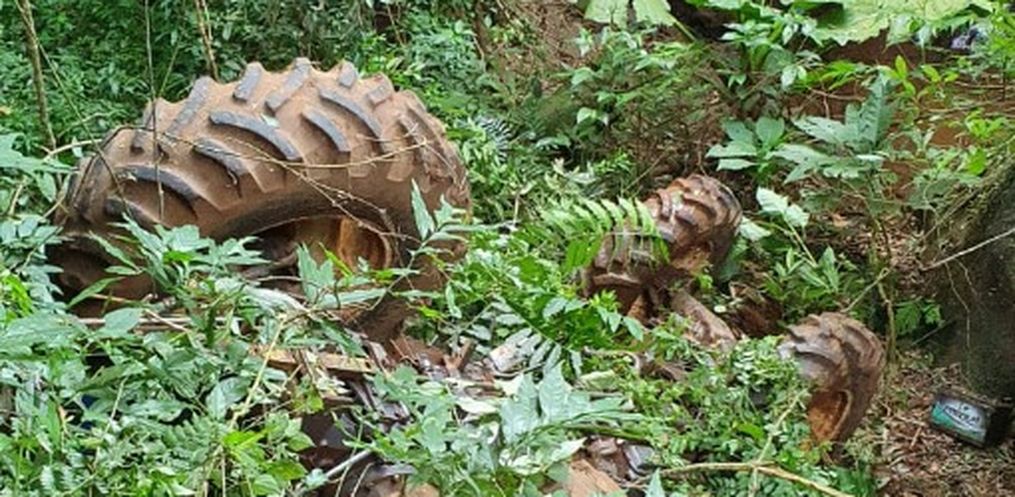 O trator trabalhava em área rural e o operador conseguiu pular fora antes da máquina tombar numa ribanceira. O homem ficou caído próximo ao trator.