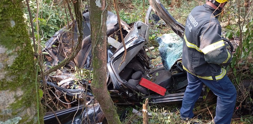Os bombeiros identificaram a vítima presa nas ferragens de um Chevrolet Classic, que possivelmente saiu da pista durante a madrugada. O automóvel estava gravemente danificado, e o corpo do homem já apresentava sinais de rigidez cadavérica, sem resposta pupilar.