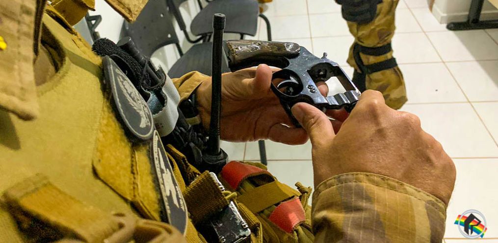 Segundo a PM, as equipes encontraram e ao tentar abordar o carro, o mesmo empreendeu fuga, jogando pela janela a arma. Em seguida ele parou e foi detido. Em buscas a arma, um revólver calibre .32 foi encontrado com duas munições intactas.