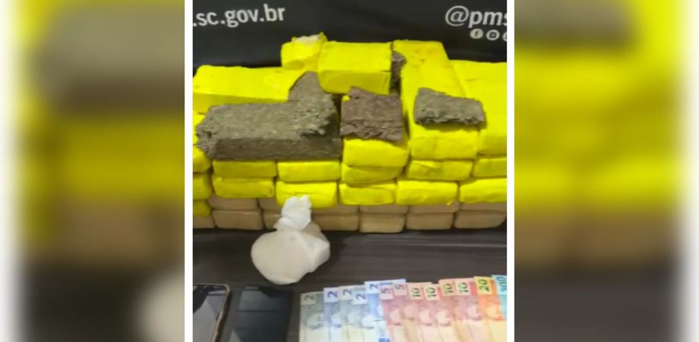 Durante a revista, os policiais encontraram cerca de 22,7 quilos de maconha no porta-malas e 202 gramas de cocaína sob o banco do passageiro. Também foram apreendidos R$ 380 em dinheiro, celulares e o veículo.