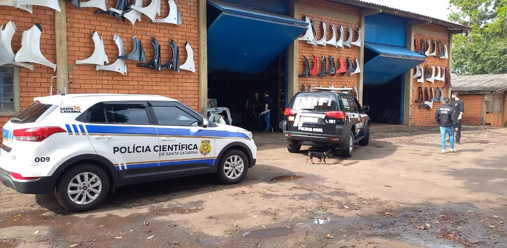 Na manhã desta quarta-feira, 19, Policiais Civis de Descanso, com apoio de Policiais de São Miguel do Oeste e Chapecó, além da Polícia Científica, deram cumprimento a sete Mandados de Busca e Apreensão nas cidades de São Miguel do Oeste e Chapecó decorrentes de investigação que apura a prática dos crimes de adulteração de sinal identificador e receptação de veículos e peças.