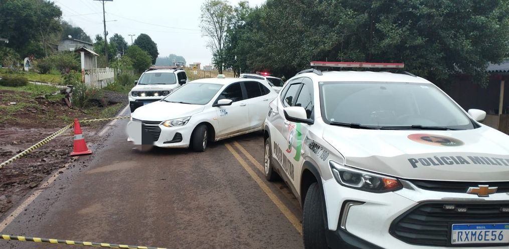 Conforme o apurado, uma arma de fogo foi localizada dentro do veículo. O motorista foi preso em flagrante. As polícias Científicas e Civil foram acionadas para realizar a perícia.