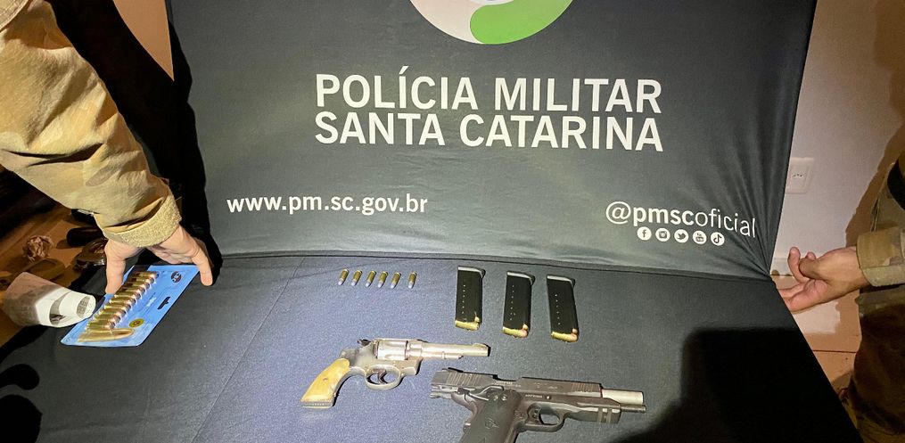 Durante a abordagem, uma guarnição do Pelotão de Patrulhamento Tático (PPT) encontrou duas armas de fogo na caminhonete Toyota Hilux, com placas de São Miguel do Oeste, uma pistola .45mm com 24 munições e um revólver calibre .32 com seis munições. A pistola estava registrada em nome da esposa do suspeito, enquanto o revólver não possuía registro.