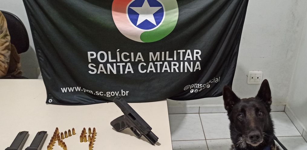 Durante a busca, o cão farejador Colt localizou uma pistola calibre 9mm escondida em um compartimento na parte superior da cabine do veículo. Além da arma, foram encontrados dois carregadores municiados, um com 17 munições e outro com 15 munições intactas.