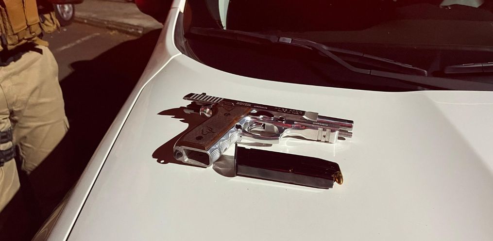 A ocorrência foi registrada na Rua Barão do Triunfo, no centro da cidade, após denúncia de um popular que teria visto o suspeito portando uma arma em um Jeep Cherokee, com placas de Barracão (PR).
