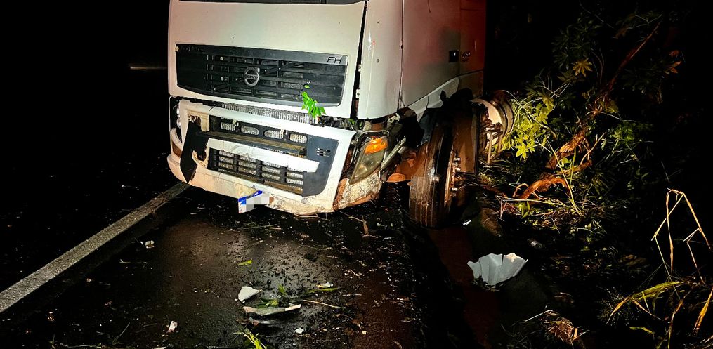 Um homem ficou ferido após uma carreta sair da pista na noite desta quarta-feira, 8, por volta das 19h, na BR-282, entre São Miguel do Oeste e Maravilha. O condutor do caminhão trator perdeu o controle e colidiu com um barranco.