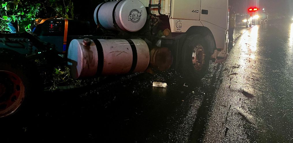 O Corpo de Bombeiros prestou atendimento ao motorista, que sentia dores no peito e foi encaminhado ao hospital. A Polícia Rodoviária Federal esteve no local para realizar os procedimentos necessários.