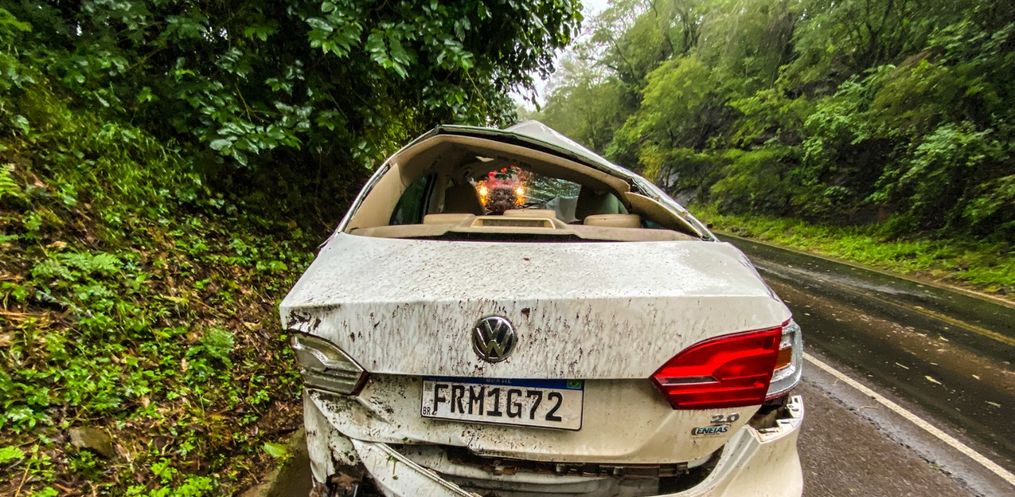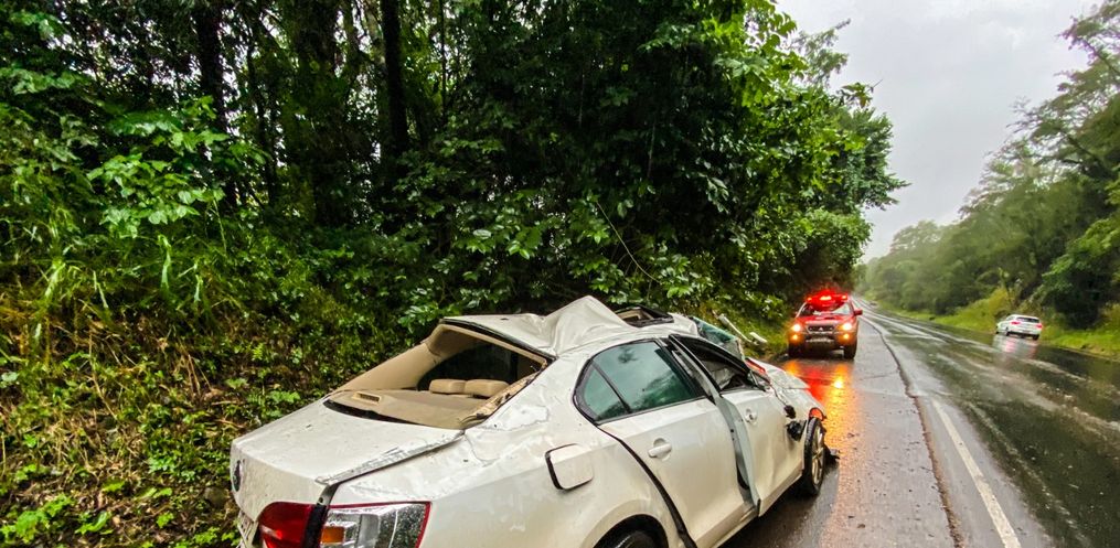 Saída de pista seguida de capotamento deixa três feridos na SC 305, em São Lourenço do Oeste